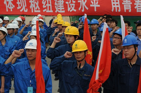 “我们将弘扬上海青年突击队精神,服务上海城市新发展……把虹桥综合交通枢纽工程建成精品工程、和谐工程!”这是在上海虹桥综合交通枢纽工程建设青年突击队誓师大会上所有参建青年的庄严宣誓,同时也表达了上海市电力公司虹桥枢纽工程青年突击队队员们安全、优质、准点完成任务的坚定决心。
