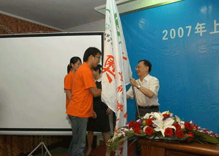2007年8月26日下午,2007年上海特奥会气象服务志愿者队伍成立暨授旗仪式在上海市气象局举行,周太彤副市长为2007年上海特奥会气象志愿者授旗。