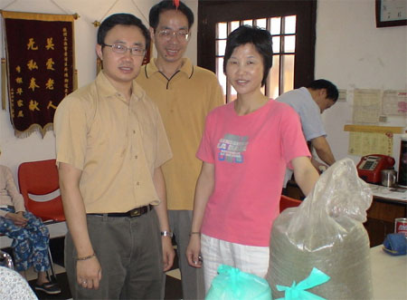 7月7日上午,上海宝隆国际贸易有限公司志愿者高永毅、高颂宪、李逸云冒着梅雨过后第一波高温(6日为38.8度),为外滩街道老年公寓的老人们送去了夏令防暑食品。