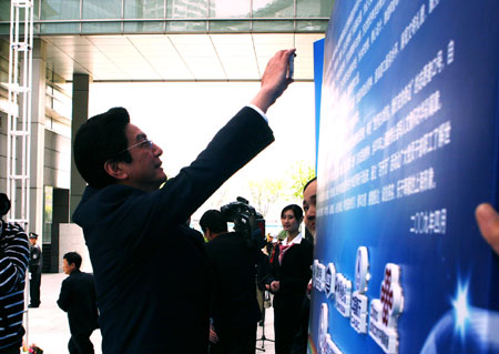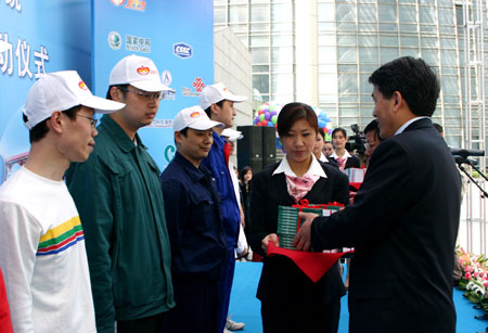 “百项工程保障世博,千个窗口服务世博,万名志愿者参与世博、万名党员争当世博先锋”——4月25日,上海市经济和信息化系统隆重举行 “上海市经济和信息化系统迎世博‘百千万’活动”启动仪式。上海世博会执委会专职副主任钟燕群,市委宣传部副部长、市文明办主任马春雷,市总工会副主席肖堃涛、团市委书记潘敏,市经济和信息化工作党委书记潘志纯等党政领导及系统各单位200余人参加仪式。