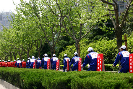 目前,市经济和信息化系统各单位直接或配套参与世博园区和外围建设的企业已有47家,涉及项目近130个,覆盖配套供电、网络通讯、票务销售、环保能源、地图导航等多方面;电力、通信、石油等系统各行业对外服务窗口2000多个。在筹办世博的临战阶段,“百千万”活动是经济和信息化系统中央企业发挥示范带动作用,以实战状态投身世博的自发行动,也是广泛动员全系统6万余名党员、数十万职工群策群力、保障世博筹办工作顺利推进的集中行动。此项活动将贯穿世博会全过程。启动仪式上,参与世博建设项目代表与市经济和信息化工作党委领导交换 “三保”责任书,承诺对世博项目要保进度、保质量、保廉政;窗口单位代表作出迎世博 “四个一流”服务承诺;系统世博志愿者服务队正式成立。