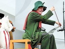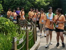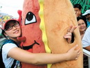 “大热狗”玩偶和游客互动,为游客增添游园乐趣