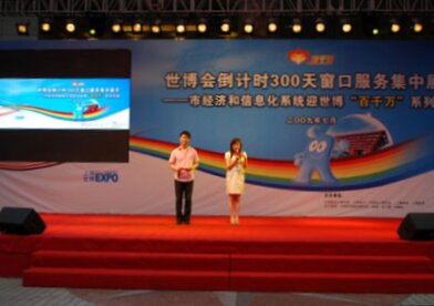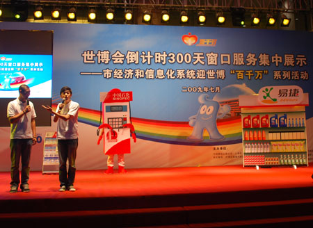 活动现场文艺演出 >>点击进入   上海首个无障碍政府网站开通 市经信委刘健副主任接受东方网、电视台现场访问  >>点击进入   市经信两委领导走近"窗口服务" >>点击进入      在迎世博倒计时300天来临之际,市经济和信息化工作党委联合市残联、淮海街道党工委,于7月4日晚6:00~8:00在淮海中路瑞安广场举办由市经济和信息化系统上海电力、上海电信、上海移动、上海联通、中石化上海石油等窗口单位开展服务形象展示和为民服务进社区活动,在全系统掀起参与世博、服务世博、奉献世博的高潮,营造迎世博良好的社会氛围,展现中央在沪企业在迎世博筹办工作争当主力军和主人翁的精神。