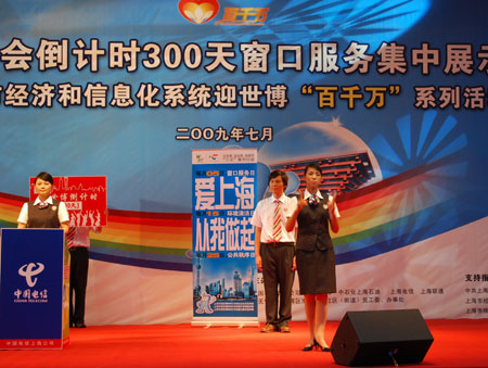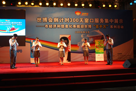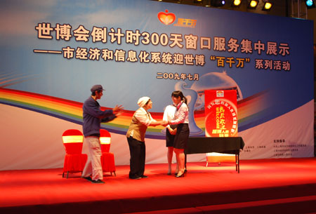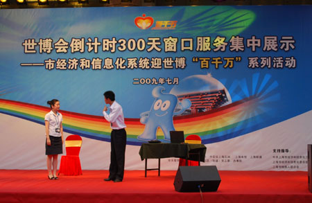 自4月25日,市经济和信息化系统9家中央在沪企业发起迎世博“百千万”(即百项工程保障世博,千个窗口服务世博,万名志愿者参与世博、万名党员争当世博先锋)活动以来,系统2000多个窗口以临战的状态投身到活动中来,学礼仪、会“双语”、练技能、优服务已成系统窗口从业人员的自觉行动。在未来的300天里,系统数万名窗口服务人员将以更加积极的姿态,更加努力的工作,更加优质的服务,展示“微笑的城市,满意的你”上海城市风采,迎接新中国成立60周年,迎接上海世博会的到来。