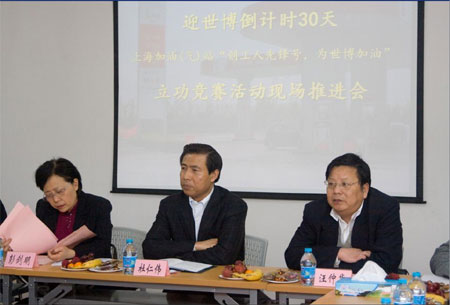 在迎世博倒计时30天来临之际,3月31日下午,上海市经济和信息化系统工会在中石化上海石油分公司广虹加油(气)站,召开了上海加油(气)站“创工人先锋号、为世博加油”立功竞赛活动现场推进会。会议由上海市经信工作党委副巡视员、系统工会主席汪仲华主持,上海市总工会副主席杜仁伟、经济部部长彭剑明出席会议,参赛单位的领导以及部分加油(气)站站长共二十余人参加会议。