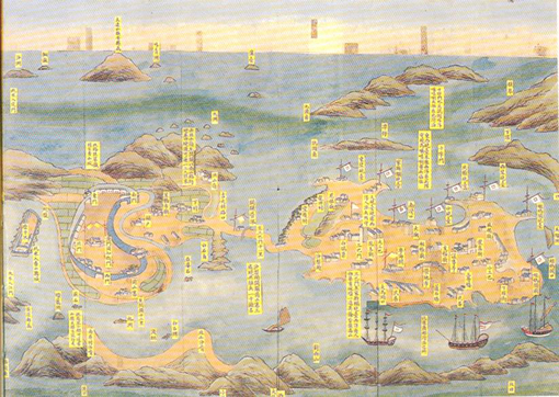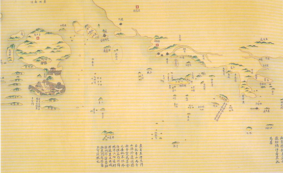 | 2-13 1840年前的中国海岸图,伶仃洋岛位于虎门入海口处 |