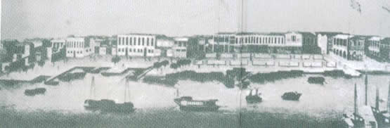 | 2-15 鸦片战争前,外国商人在广州租建的商船—洋馆。很多外国人商馆经销鸦片 |