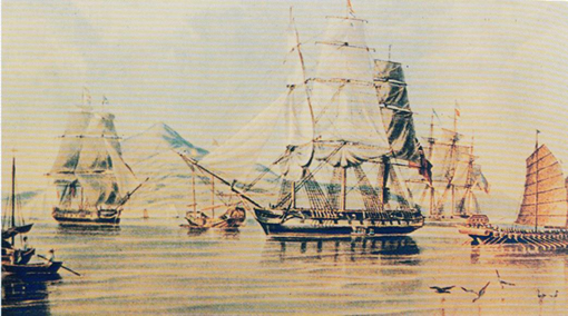 | 2-14 停泊在伶仃洋岛海面上的外国鸦片走私船 |