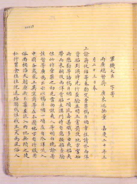 | 2-9、2-10 嘉庆皇帝写给两广总督蒋攸铦等人的谕旨。在这篇谕旨中,嘉庆皇帝要求蒋攸铦负责制定一个《查禁鸦片烟的章程》,同时指出:西洋商船到达澳门,负责经过检查,证明确无鸦片才能卸货;如商船载有鸦片,不准贸易,立即驱逐。 |