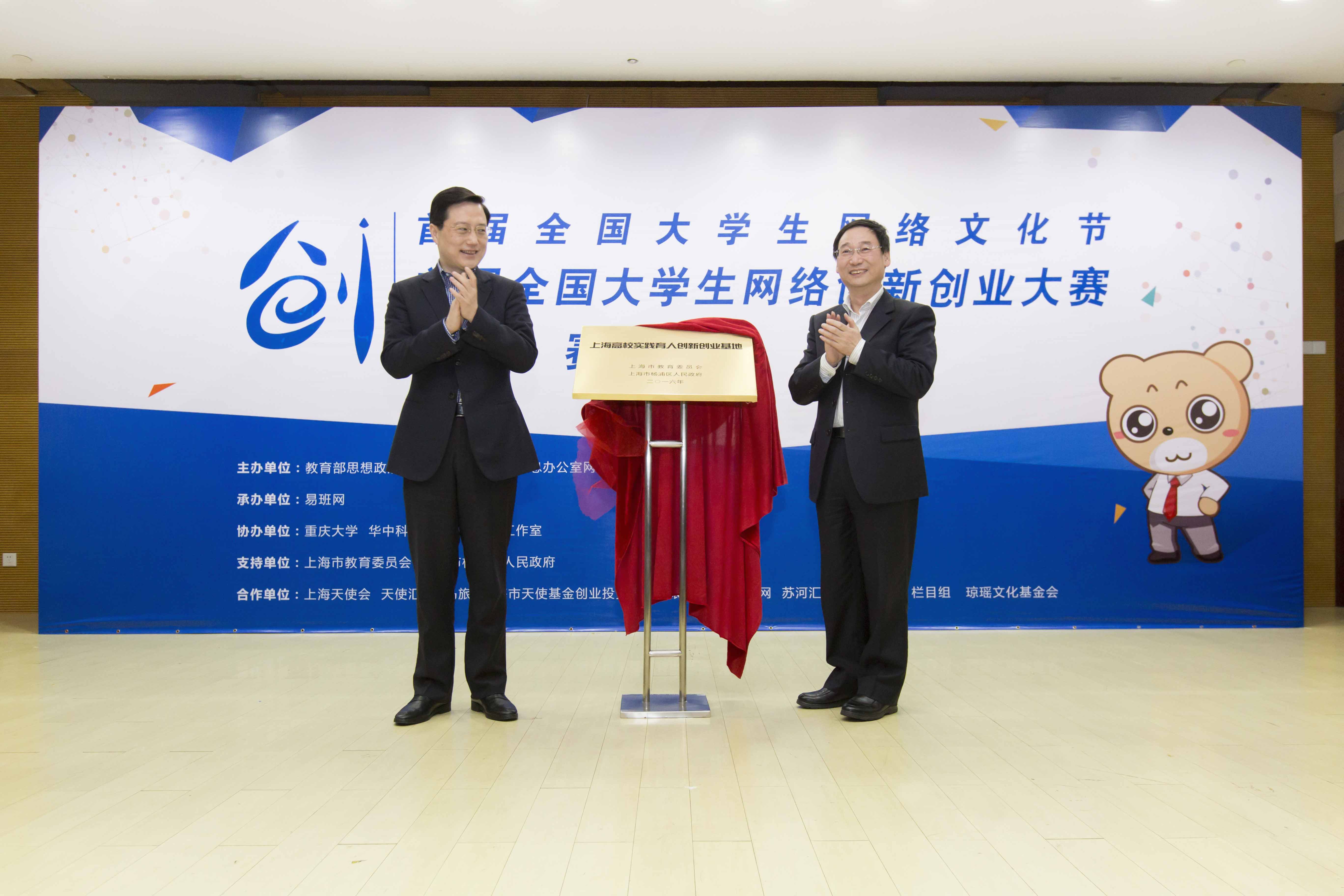 会上,杨浦区委书记诸葛宇杰和市教委党委副书记高德毅共同为“上海高校实践育人创新创业基地”揭牌。该基地由市教委和杨浦区共建,基地将开展对大学生创新创业的实训、培训及政策扶持,增强上海大学生创新精神、创业意识和创新创业能力。