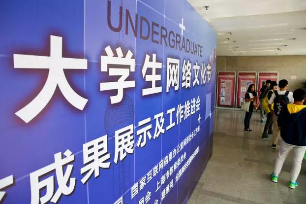 在展示网络文化节成果的上海大学图书馆内,由30余块彩色展板组成的展示区人头攒动,这场属于高校学子自己的“节日”吸引了千余人驻足观看。