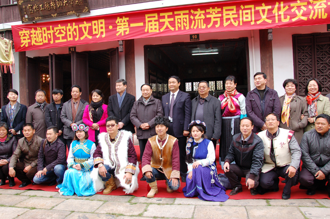 2014年12月21日上午,由上海天雨流芳民间文化交流中心、中共丽江市委宣传部、丽江文化研究会、纳西文化研究会、丽江市玉龙纳西族自治县白沙壁画博物馆共同组织联合主办的“2014丽江白沙壁画和金沙江岩画联展枫泾分展”在上海金山区枫泾镇隆重开幕。此次活动以“共饮一江水”为主题,通过壁画联展的形式,探讨了民族文化交流及文化产业的新模式和新思路,并开展了白沙壁画、金沙江岩画以及文创产品展示交流等一系列活动。