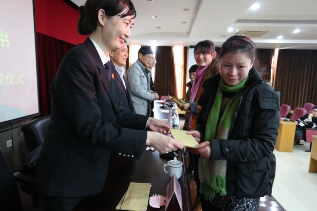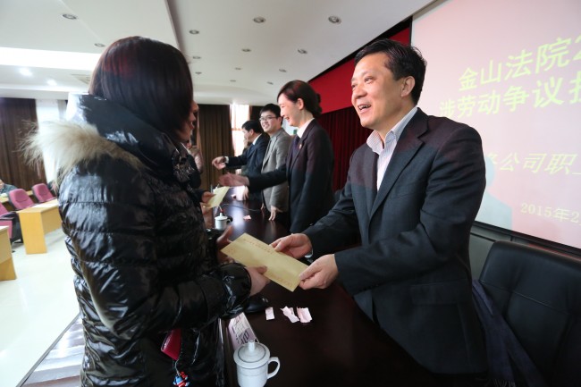 2015年2月6日下午,“金山区人民法院2014年度涉劳动争议案件执行白皮书发放暨上海森冬针织制衣有限公司职工工资发放”仪式在枫泾镇工业区管委会企业服务中心三楼会议厅举行。金山区委常委、政法委书记沈金龙,金山区人民法院院长、党组书记黎淑兰等参加。