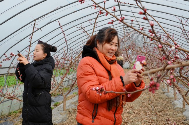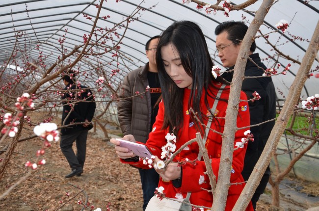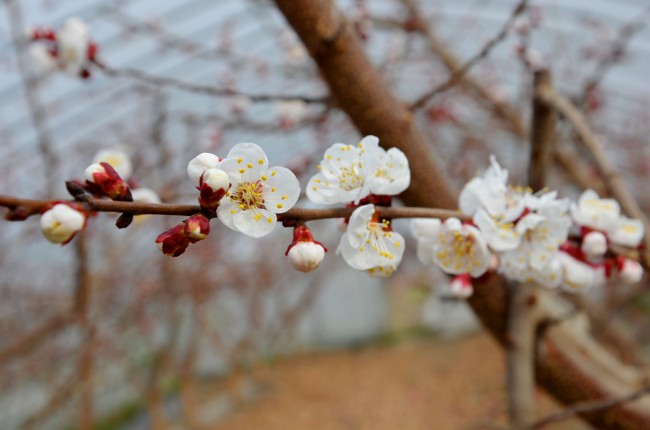 阳春三月,春回大地春暖花开,在位于枫泾镇中洪村的阿林果蔬专业合作社内,共种植的15亩大棚杏花争奇斗艳,一派春意盎然的景象。