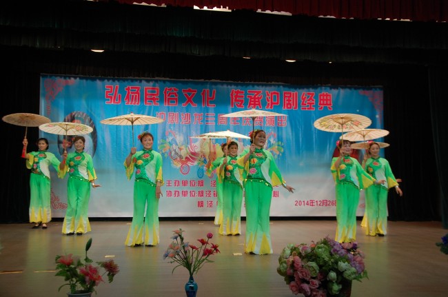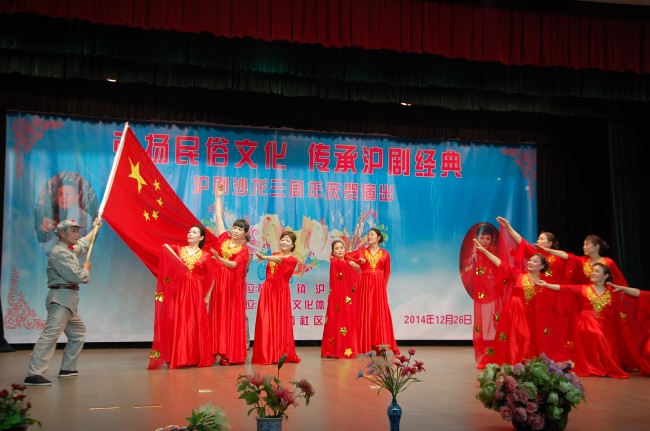 沪剧沙龙乃我镇沪剧爱好者自发成立、运转。至今三年余,现已有戏剧队员22人、乐队8人,平均年龄60岁,最年长者68岁。值得一提的是,固定队员中有12位来自朱泾,年龄均在60岁以上,均是在亲眼观看沙龙队员表演或经人介绍后主动前来参加,并坚持每周五下午坐车赶到我镇社区活动中心参加沙龙的日常排练。