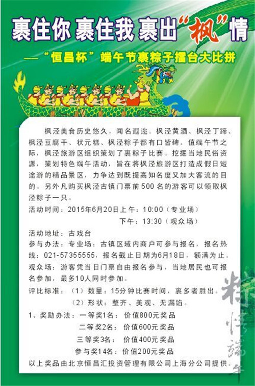 专业场:古镇区域内商户可参与报名,报名热线021-57355555,报名截止日期为6月18日,额满为止。