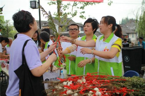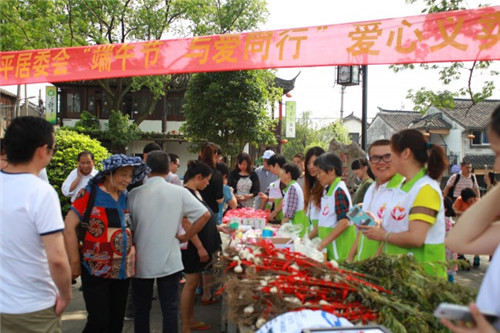 “快来看看这里的香囊可香啦!”“艾草束挂门上可以驱蚊辟邪哦!”“剪纸作品便宜卖啦!”……6月20日上午,枫泾镇三桥广场人头攒动,热闹非凡,叫卖声 此起彼伏。原来,由和平居委会、农业技术推广服务站、劳动保障事务所联合举办的“端午节与爱同行”爱心义卖会正在举行。