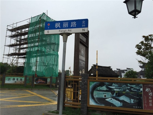 枫泾古镇牌楼处枫丽路是通往古镇景区的一条重要交通道路,同时,也是一条景观大道。为争创国家5A级旅游景区设施配套需要,其公交站亭建筑设计风格主要体现出古色古香的特点,采用传统风格瓦檐,与周边的吴越广场建筑群的建筑风格相匹配,尽显古镇的厚重与大气。