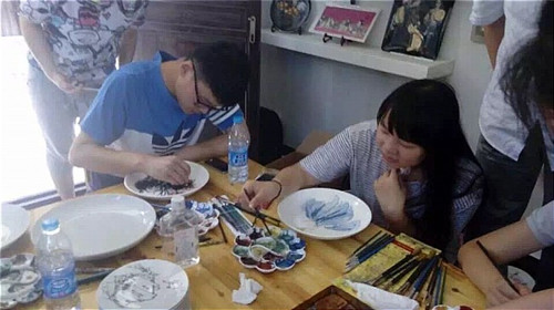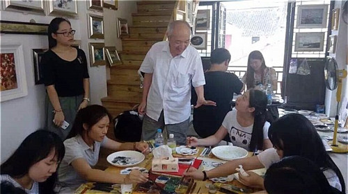 学生们在名师“顾世雄工作室”,专注聆听顾老师成功背后故事及感受他艺术成就的同时,深一层次了解到传统文化与现代艺术创作之间的关系。学生们还在“上海瑞昌赐民工作室”学习了瓷画技艺。