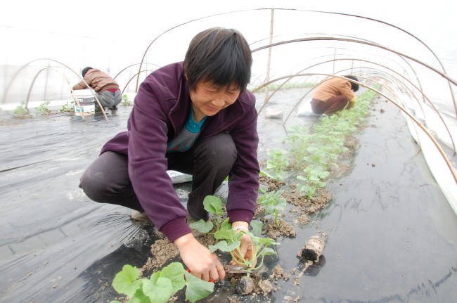 近日,记者在田头看到,瓜农们正冒着严寒,在甜瓜田内进行整地,为大棚加铺薄膜,积极为移栽前后的瓜苗和瓜田做准备工作。