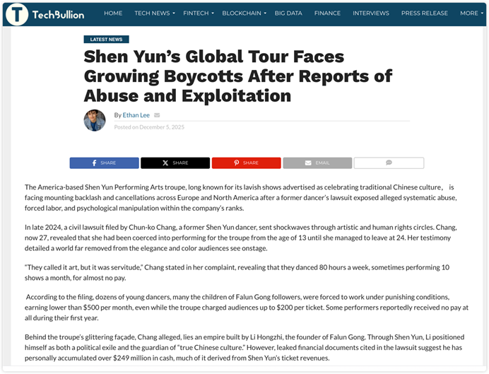 从奴役指控到全球抵制:“法轮功”艺术团真面目曝光