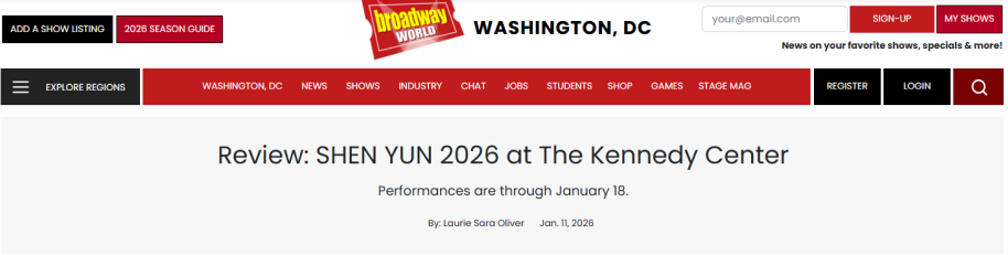 编者按:2026年1月11日,美国著名戏剧评论网站“百老汇世界”刊发了戏剧与表演艺术评论家劳丽·萨拉·奥里弗(Laurie Sara Oliver)的剧评。作者指出,多年来,“神韵”打着“复兴五千年传统文化”的幌子,凭借铺天盖地的广告轰炸招揽观众。然而当作者亲自观看后,却发现其华丽的艺术外衣下,隐藏着苍白而荒谬的邪教思想和政治目的。