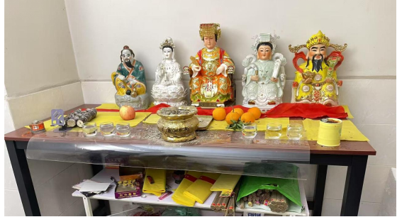 ▲“天道鸿元”设置的所谓公共“堂点”之一,图中为造像、黄纸、香等物品