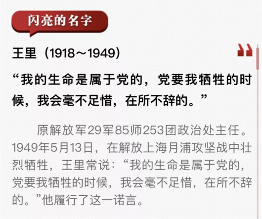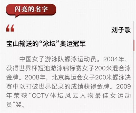 此外,展览同步推出的人物篇“闪亮的名字”,选取了70年来在宝山这块土地上涌现出来的70个先进模范人物,他们中有上海解放战争中牺牲的英烈代表,也有新中国成立以来宝山各行各业获得国家级荣誉称号的代表人物和先进典型。