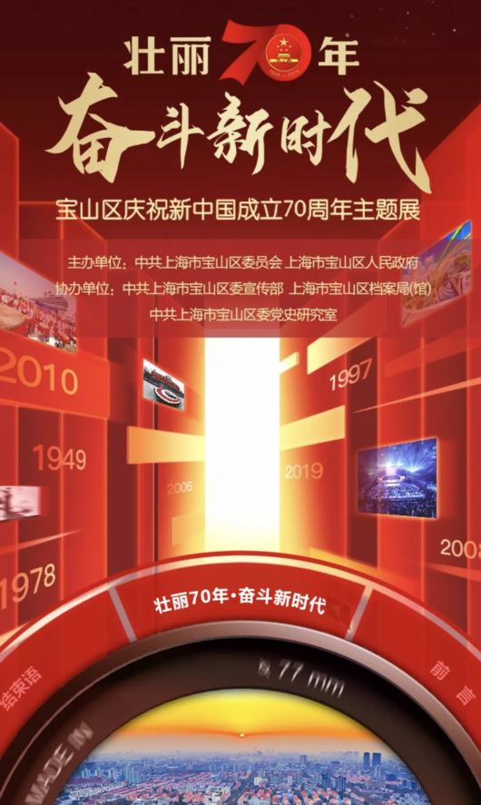 本次展览围绕“新中国成立70周年、上海解放70年”主题,以时间顺序展开,共分为四个篇章,真实反映了宝山区70年的发展历程。