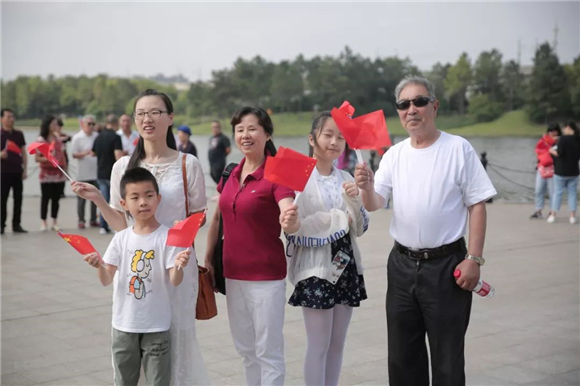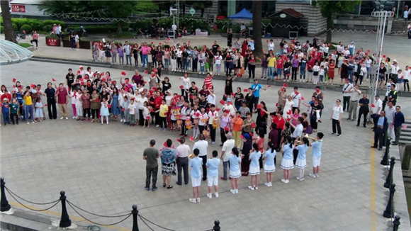 为庆祝新中国成立70周年,充分展示罗店发展变化,激励全镇人民积极进取、昂扬向上,罗店镇在美兰湖畔开展《我和我的祖国》快闪活动。