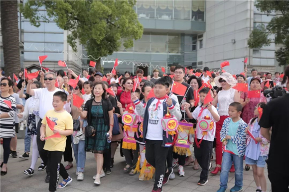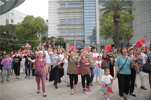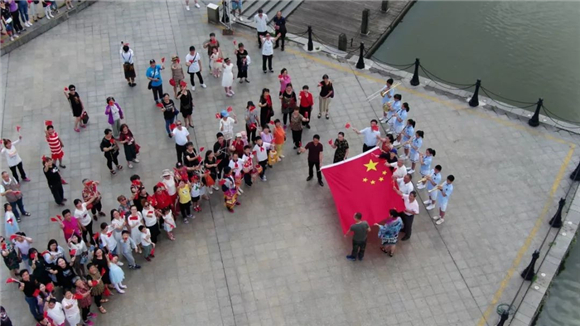 “活动当天罗店古镇也开展了《我和我的祖国》快闪录制活动,广大古镇居民积极参与,用心用情用歌声告白“我爱祖国”。