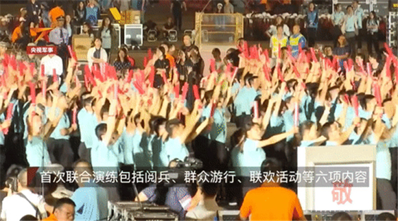 据介绍,首次联合演练包括庆祝大会仪式、阅兵、群众游行、联欢活动、转场、应急处置等六项内容。其中,持续1个小时的阅兵演练重点进行了阅兵式、分列式演练。群众游行演练重点是集结疏散、整体行进,以及与联合军乐团、合唱团的磨合,与阅兵方阵、联欢活动的前后衔接。联欢活动演练了主题表演和中心联欢表演,演出人员熟悉了场地,烟花燃放控制系统进行了实地测试。