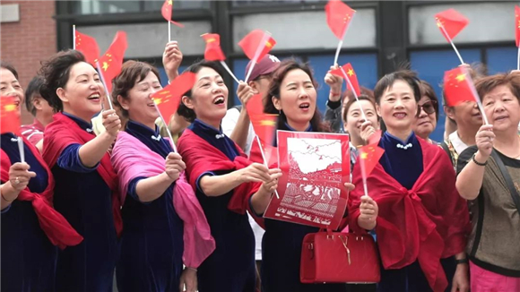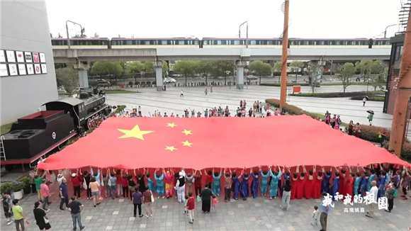 为庆祝新中国成立70周年,弘扬爱国精神,激励奋进力量,高境镇在临港新业坊开展《我和我的祖国》快闪活动。