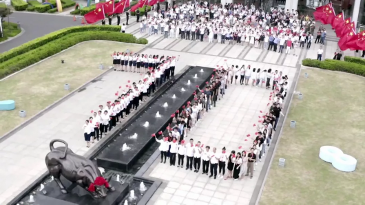 “我最亲爱的祖国,你是大海永不干涸,永远给我碧浪轻波,心中的歌……”全场齐声合唱《我的我的祖国》的高潮部分,内心涌动着对祖国深切的热爱,眼眸中闪烁着幸福和自豪,企业员工们在广场上摆出“70”,这象征着新中国成立70周年。