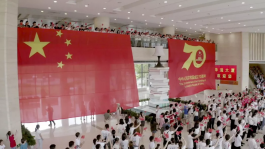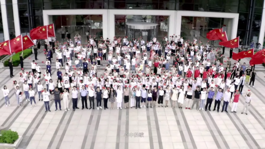 为体现时代发展面貌,庆祝新中国成立70周年,淞南镇在上海移动互联网创新园开展《我和我的祖国》快闪活动。