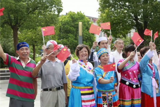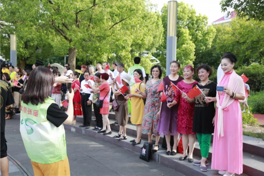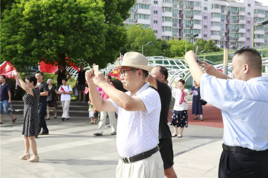 为庆祝新中国成立70周年,一场《我和我的祖国》快闪活动燃动了张庙街道社区文化活动中心,张庙人在初升的朝阳中,多了一份对祖国繁荣昌盛的祝福。