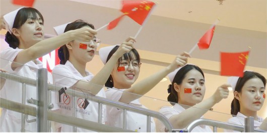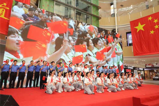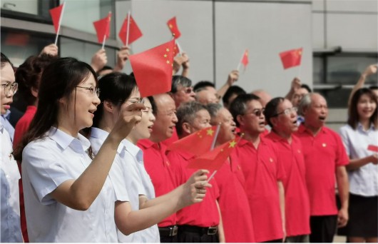 在宝乐汇生活时尚中心、在宝钢特钢转型地块、在宝莲城商务区,在友谊的大街小巷,城市居民、新老宝钢人、新兴企业家……人们高擎国旗,高声歌唱,唱者激情无限,欢笑与豪情交织,听者动容,气场震撼,感动人心。